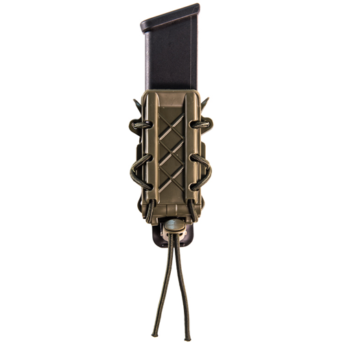 Our patented line of polymer TACOs function much the same as their nylon counterparts. The body and brackets are made with our durable and flexible, proprietary polymer and are laced together with bungee cord for the same versatility our customers have come to expect from the TACO brand. This pouch is specifically designed for short double stack mags of varying calibers, and will also hold small tools, like knives, multitools and flashlights.